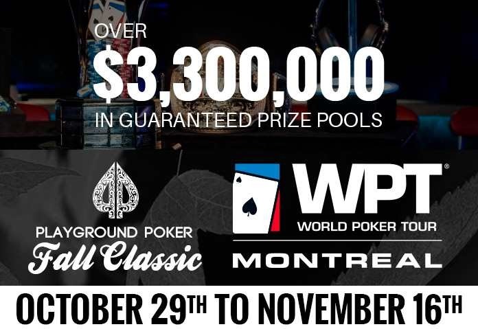 Мировая покерная серия WPT взяла старт в Монреале (Канада). Она началась 29 октября и будет проходить до 16 ноября 2017 года включительно. В качестве места проведения такого события был выбран известный покерный клуб Playground. Здесь уже неоднократно проводился WPT. Именно тут свои самые лучшие успехи продемонстрировали такие покеристы, как Pascal LeFrancois, Rainer Kempe, Mukul Pahuja.
